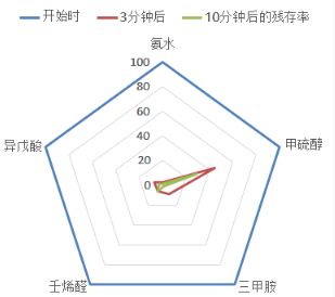 实验方法:将FRESHSHIRAIMATS®与恶臭成分同时放入密封的容器中,经过一定的时间后,用下述方法测量容器最顶部的气体的浓度